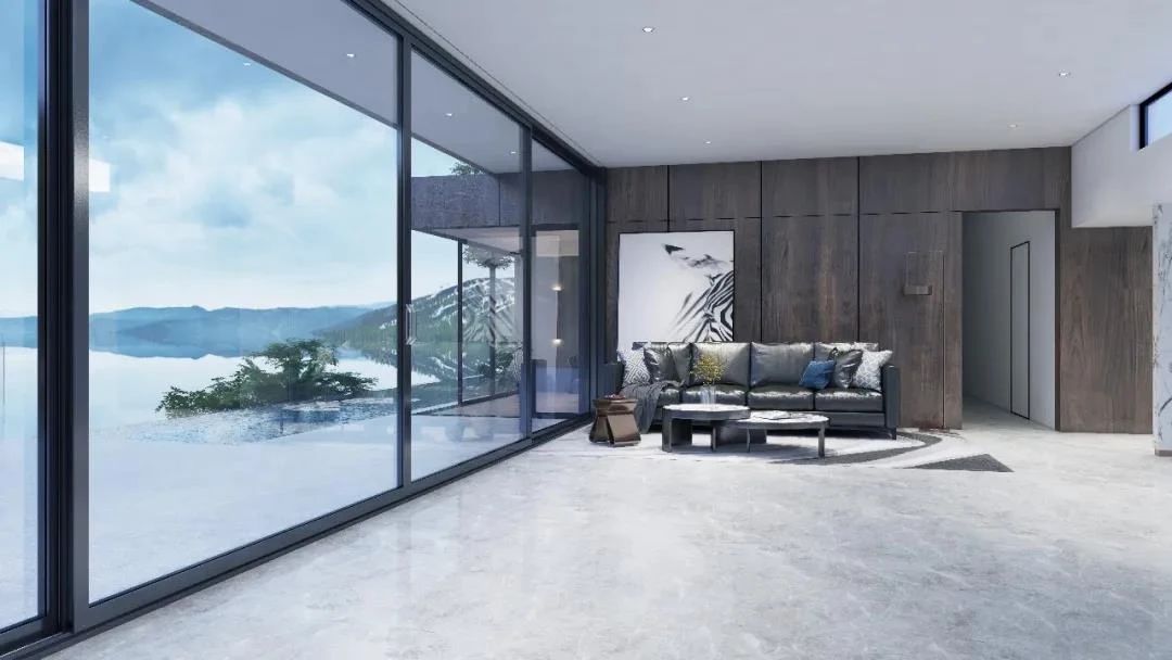 阳光的光影与铝运门窗相碰撞,铝运门窗延续整体灰色的视觉基调,窗扇表面带来如婴儿肌肤般细腻的光泽质感,随着阳光照射而呈现千百种姿态,仿若演奏光与影的赞歌,空间的立体...